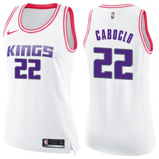 Home>NBA>Sacramento Kings>Bruno Caboclo>Women's Nike Sacramento Kings #22 Bruno Caboclo Swingman White/Pink Fashion NBA Jersey