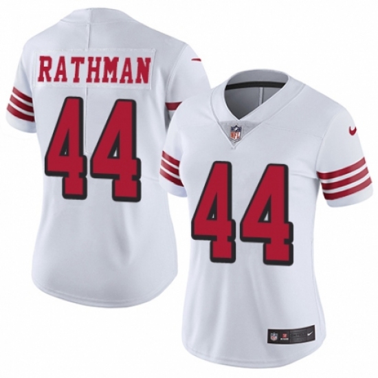>Women's Nike San Francisco 49ers #44 Tom Rathman Limited White Rush Vapor Untouchable NFL Jersey