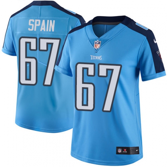 Women's Nike Tennessee Titans #67 Quinton Spain Limited Light Blue Rush Vapor Untouchable NFL Jersey