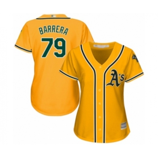 Women's Oakland Athletics #79 Luis Barrera Authentic Gold Alternate 2 Cool Base Baseball Player Jersey