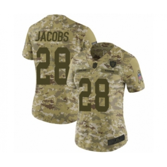 >Women's Oakland Raiders #28 Josh Jacobs Limited Camo 2018 Salute to Service Football Jersey
