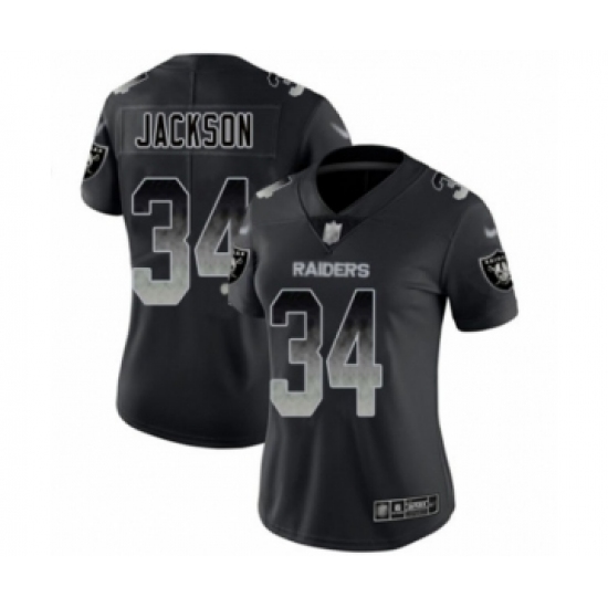 Women's Oakland Raiders #34 Bo Jackson Black Smoke Fashion Limited Player 100th Season Football Jersey