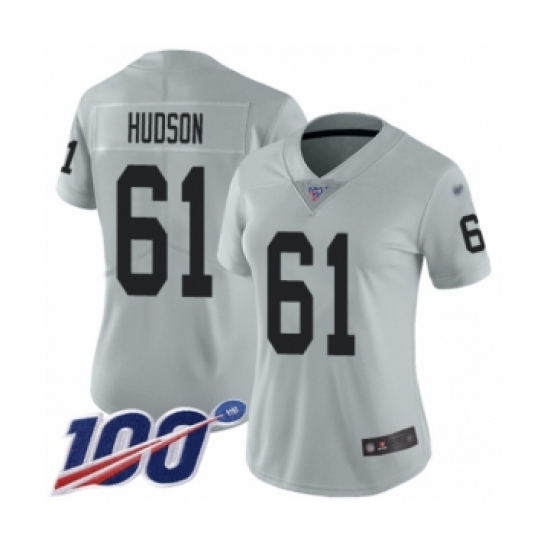 >Women's Oakland Raiders #61 Rodney Hudson Limited Silver Inverted Legend 100th Season Football Jersey