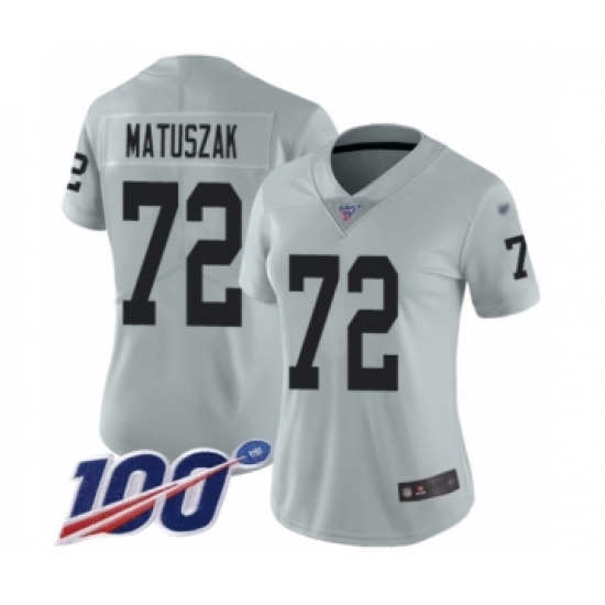 >Women's Oakland Raiders #72 John Matuszak Limited Silver Inverted Legend 100th Season Football Jersey