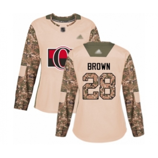 >Women's Ottawa Senators #28 Connor Brown Authentic Camo Veterans Day Practice Hockey Jersey