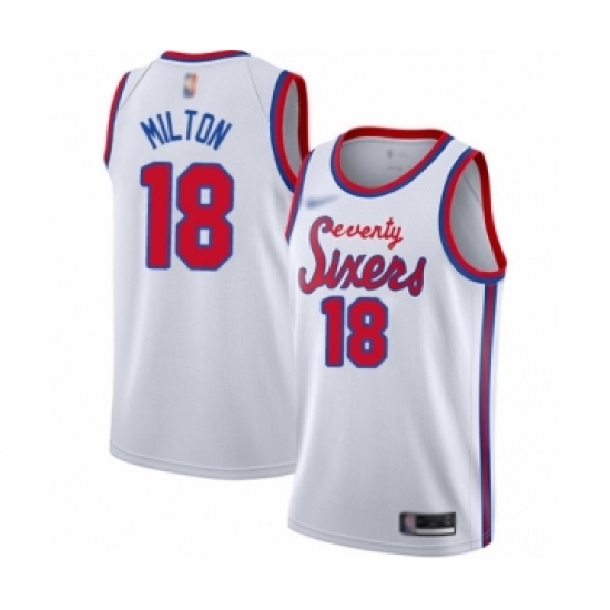 >Women's Philadelphia 76ers #18 Shake Milton Swingman White Hardwood Classics Basketball Jerseyn