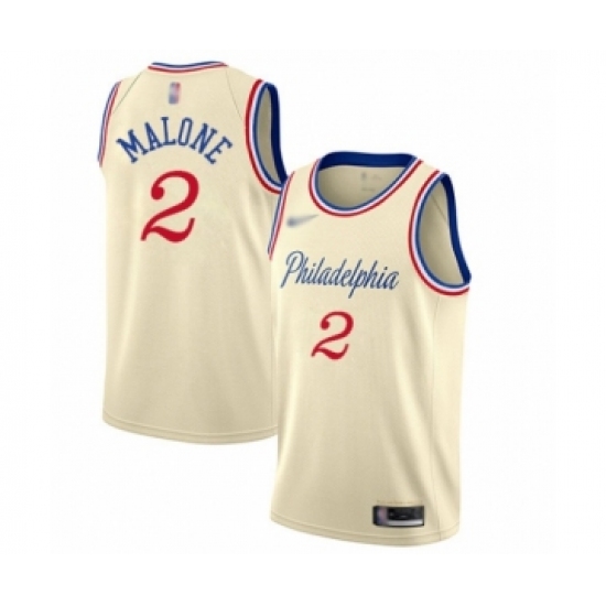 Youth Philadelphia 76ers #2 Moses Malone Swingman Cream Basketball Jersey - 2019 20 City Edition