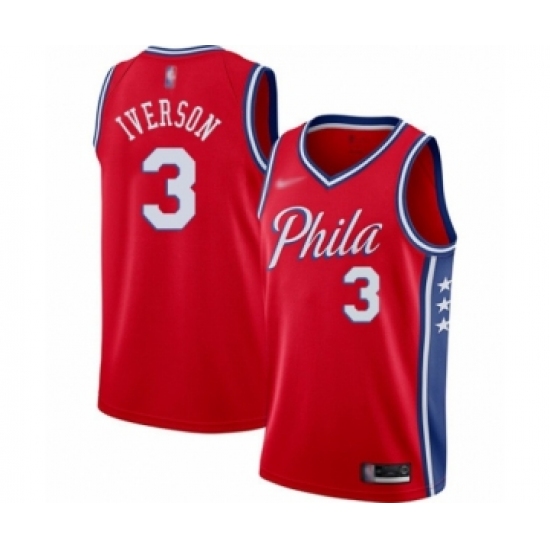 >Women's Philadelphia 76ers #3 Allen Iverson Swingman Red Finished Basketball Jersey - Statement Edition