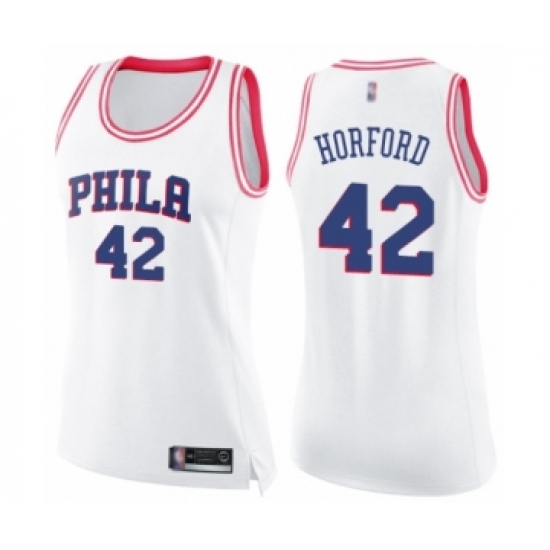 Women's Philadelphia 76ers #42 Al Horford Swingman White Pink Fashion Basketball Jersey