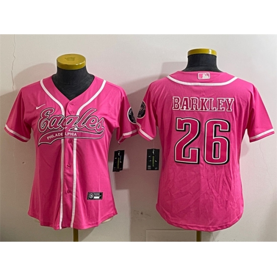 Women's Philadelphia Eagles #26 Saquon Barkley Pink Cool Base Stitched Baseball Jersey(Run Small)
