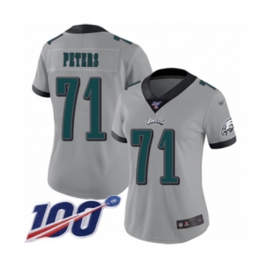 >Women's Philadelphia Eagles #71 Jason Peters Limited Silver Inverted Legend 100th Season Football Jersey