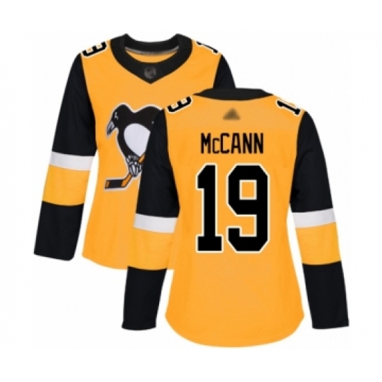 >Women's Pittsburgh Penguins #19 Jared McCann Authentic Gold Alternate Hockey Jersey