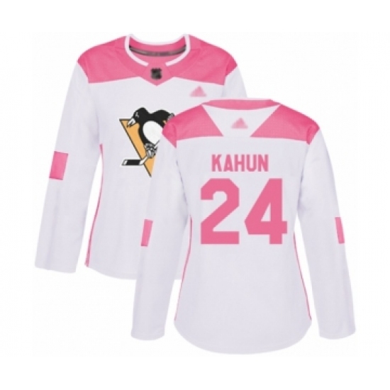 Women's Pittsburgh Penguins #24 Dominik Kahun Authentic White Pink Fashion Hockey Jersey