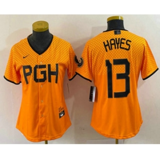 Women's Pittsburgh Pirates #13 KeBryan Hayes Yellow 2023 City Connect Stitched Jersey