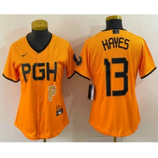 Women's Pittsburgh Pirates #13 KeBryan Hayes Yellow 2023 City Connect Stitched Jersey