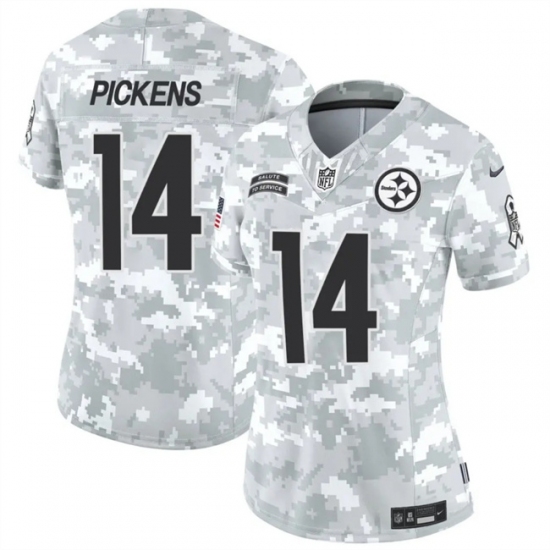 >Women's Pittsburgh Steelers #14 George Pickens 2024 F.U.S.E Arctic Camo Salute To Service Limited Stitched Football Jersey(Run Small)