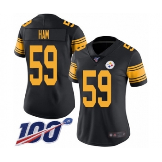 >Women's Pittsburgh Steelers #59 Jack Ham Limited Black Rush Vapor Untouchable 100th Season Football Jersey