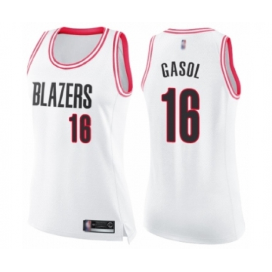 Women's Portland Trail Blazers #16 Pau Gasol Swingman White Pink Fashion Basketball Jersey