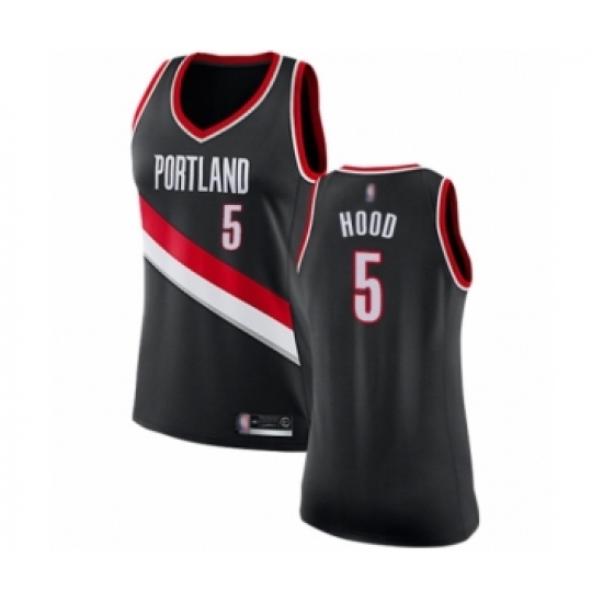 >Women's Portland Trail Blazers #5 Rodney Hood Swingman Black Basketball Jersey - Icon Edition