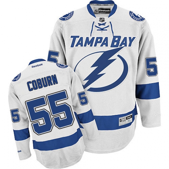 Home>NHL>Tampa Bay Lightning>Braydon Coburn>Women's Reebok Tampa Bay Lightning #55 Braydon Coburn Authentic White Away NHL Jersey