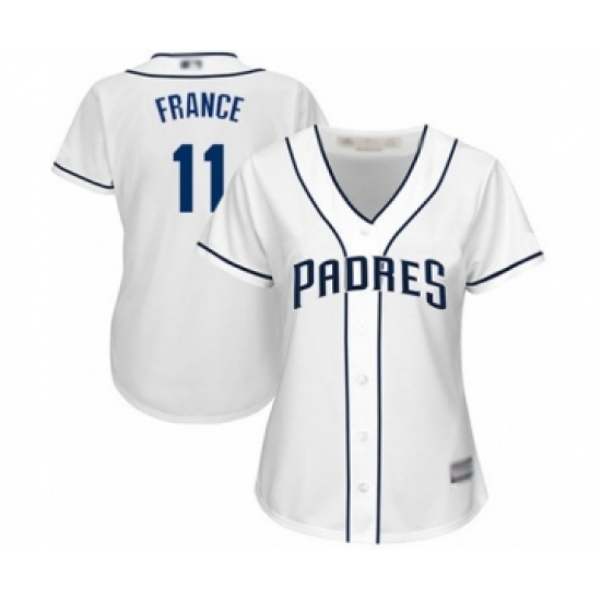 Women's San Diego Padres #11 Ty France Authentic White Home Cool Base Baseball Player Jersey
