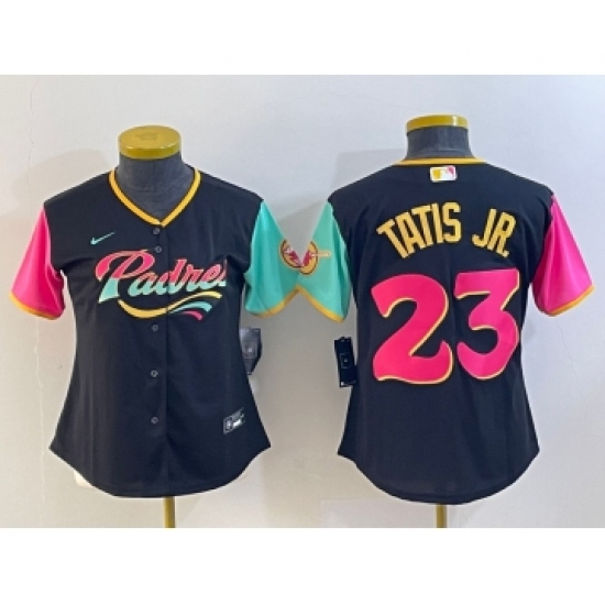 >Women's San Diego Padres #23 Fernando Tatis Jr Black 2022 City Connect Cool Base Stitched