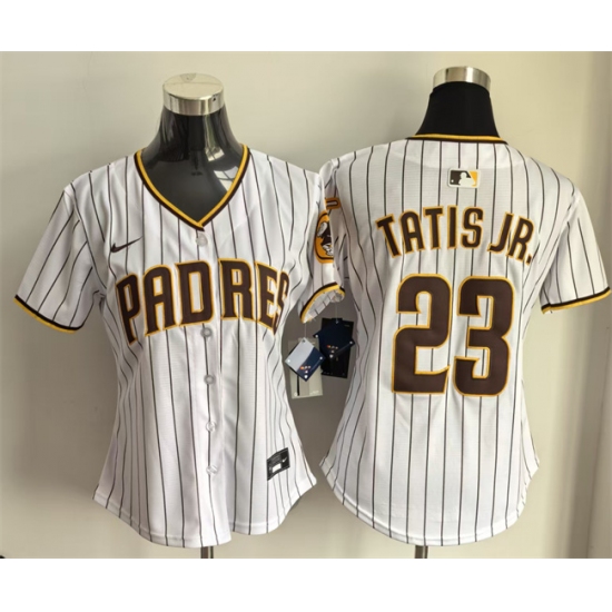 Women's San Diego Padres #23 Fernando Tatis Jr. White Home Limited Stitched Baseball Jersey(Run Small)