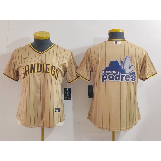 Women's San Diego Padres Tan Team Big Logo Stitched Baseball Jersey(Run Small)