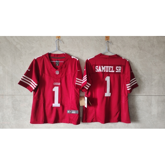 Women's San Francisco 49ers #1 Deebo Samuel Sr. Red F.U.S.E Vapor Untouchable Stitched Jersey(Run Small)