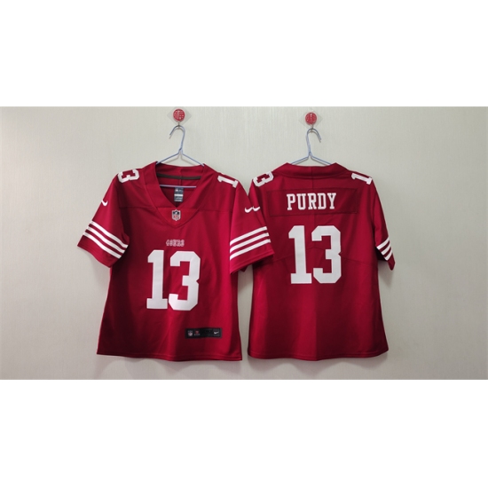 >Women's San Francisco 49ers #13 Brock Purdy Red Vapor Football Stitched Jersey(Run Small)