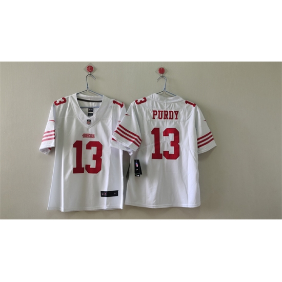 >Women's San Francisco 49ers #13 Brock Purdy White Vapor Football Stitched Jersey(Run Small)