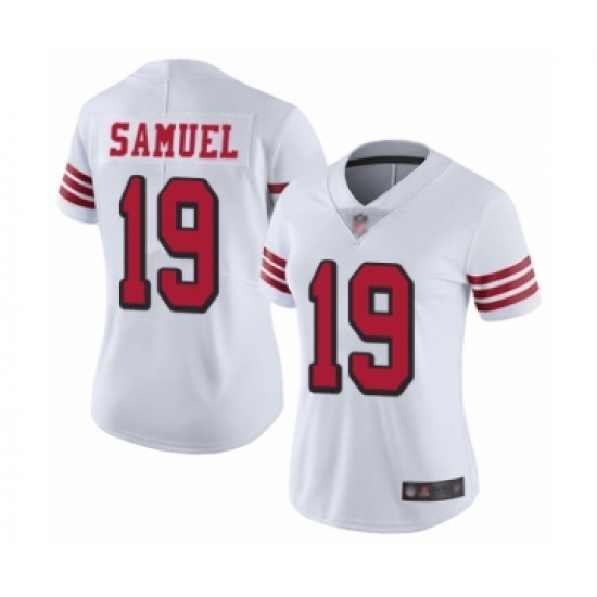 >Women's San Francisco 49ers #19 Deebo Samuel Limited White Rush Vapor Untouchable Football Jersey