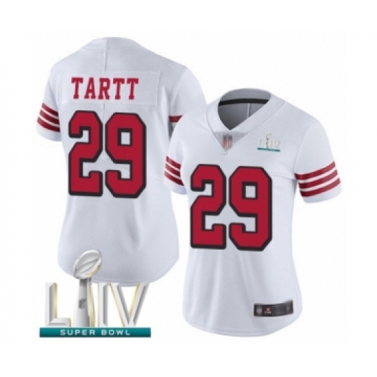 >Women's San Francisco 49ers #29 Jaquiski Tartt Limited White Rush Vapor Untouchable Super Bowl LIV Bound Football Jersey