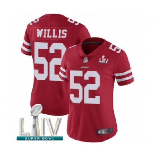 Women's San Francisco 49ers #52 Patrick Willis Red Team Color Vapor Untouchable Limited Player Super Bowl LIV Bound Football Jersey