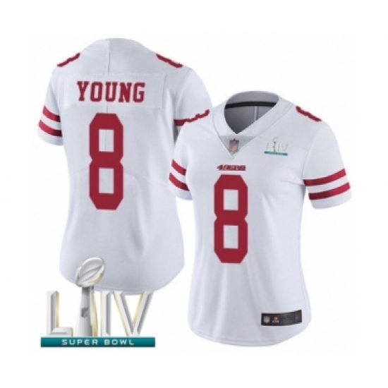 >Women's San Francisco 49ers #8 Steve Young White Vapor Untouchable Limited Player Super Bowl LIV Bound Football Jersey