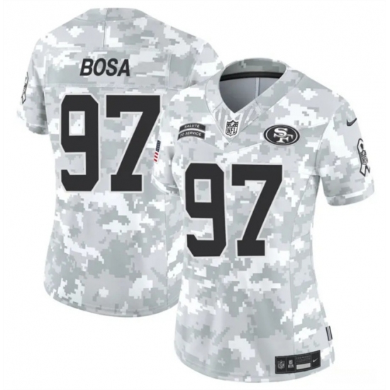 >Women's San Francisco 49ers #97 Nick Bosa 2024 F.U.S.E Arctic Camo Salute To Service Limited Stitched Jersey(Run Small)