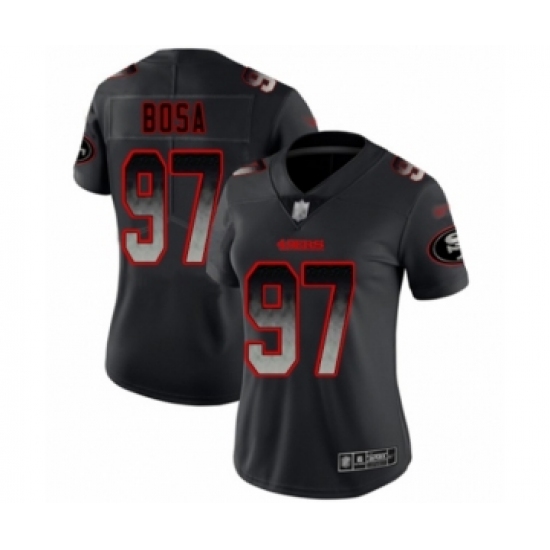 Women's San Francisco 49ers #97 Nick Bosa Limited Black Smoke Fashion Football Jersey