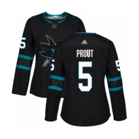 >Women's San Jose Sharks #5 Dalton Prout Authentic Black Alternate Hockey Jersey