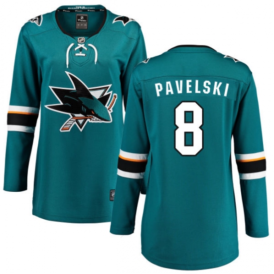 Home>NHL>San Jose Sharks>Joe Pavelski>Women's San Jose Sharks #8 Joe Pavelski Fanatics Branded Teal Green Home Breakaway NHL Jersey