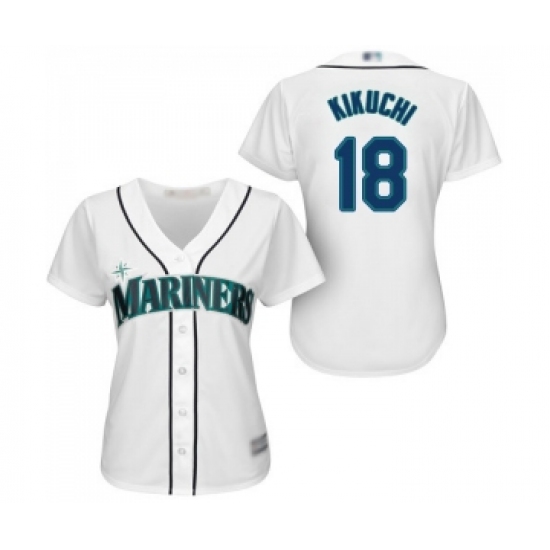 >Women's Seattle Mariners #18 Yusei Kikuchi Replica White Home Cool Base Baseball Jersey
