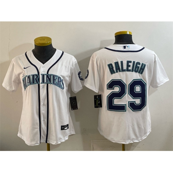 >Women's Seattle Mariners #29 Cal Raleigh White Cool Base Stitched Baseball Jersey(Run Small)