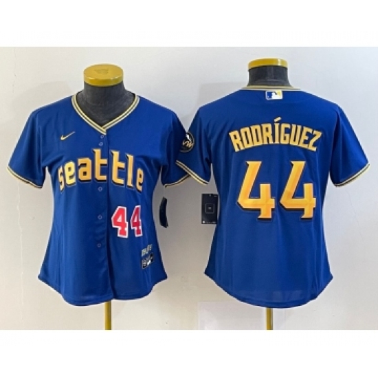 Women's Seattle Mariners #44 Julio Rodriguez Blue 2023 City Connect Cool Base Stitched Jersey