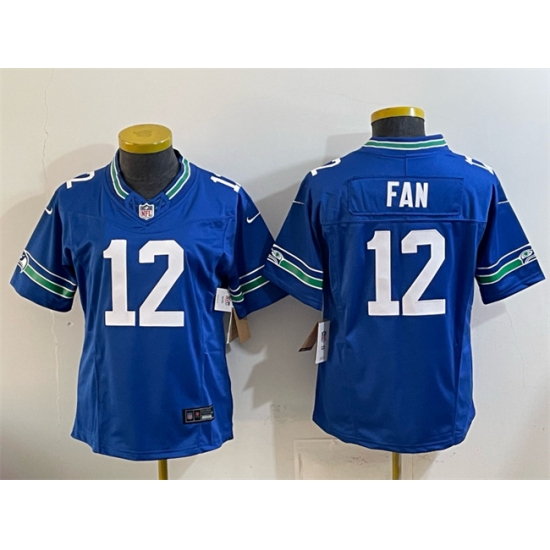 >Women's Seattle Seahawks #12 Fan Royal 2024 F.U.S.E Throwback Vapor Limited Stitched Football Jersey(Run Small)