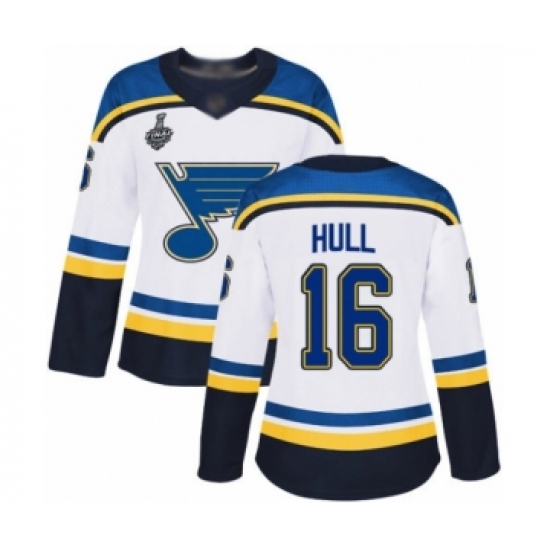 Women's St. Louis Blues #16 Brett Hull Authentic White Away 2019 Stanley Cup Final Bound Hockey Jersey