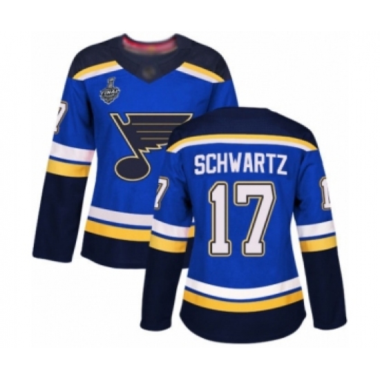 Women's St. Louis Blues #17 Jaden Schwartz Authentic Royal Blue Home 2019 Stanley Cup Final Bound Hockey Jersey