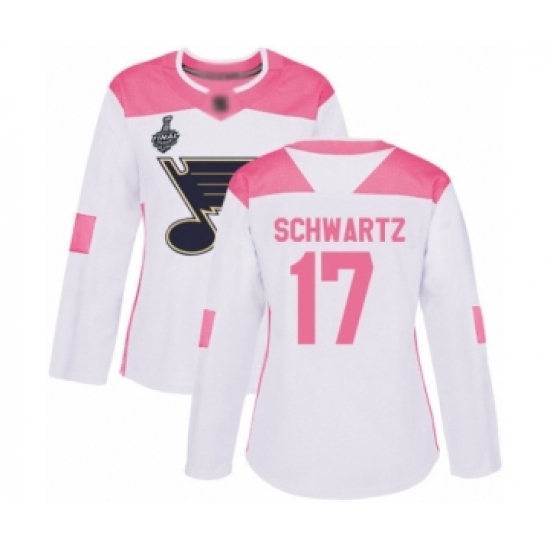 Women's St. Louis Blues #17 Jaden Schwartz Authentic White Pink Fashion 2019 Stanley Cup Final Bound Hockey Jersey