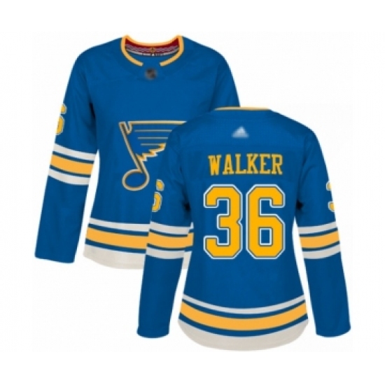 Women's St. Louis Blues #36 Nathan Walker Authentic Navy Blue Alternate Hockey Jersey