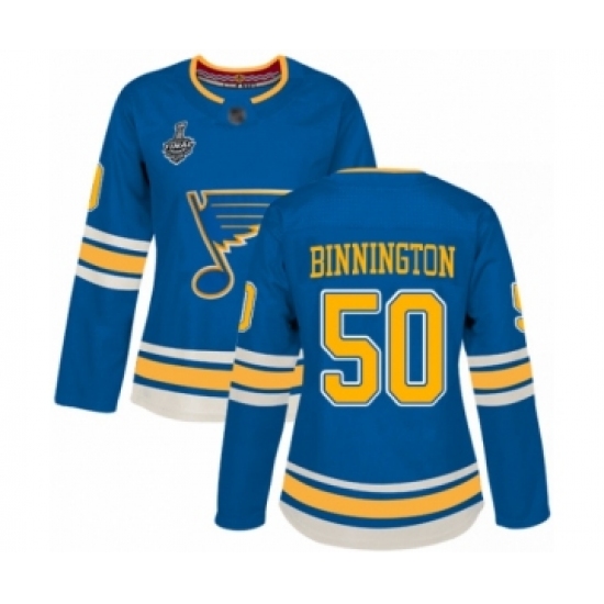 >Women's St. Louis Blues #50 Jordan Binnington Authentic Navy Blue Alternate 2019 Stanley Cup Final Bound Hockey Jersey