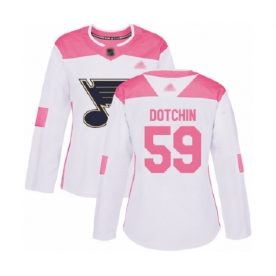 >Women's St. Louis Blues #59 Jake Dotchin Authentic White Pink Fashion Hockey Jersey