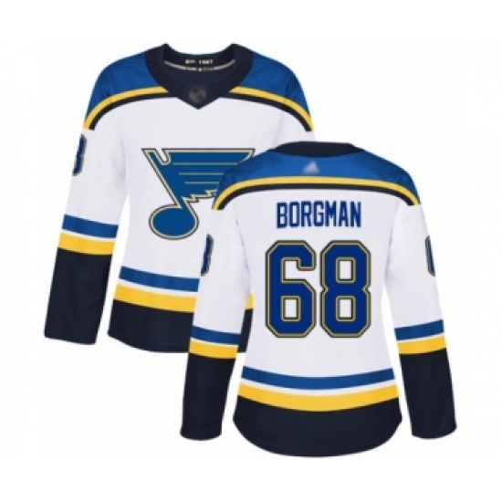 Women's St. Louis Blues #68 Andreas Borgman Authentic White Away Hockey Jersey